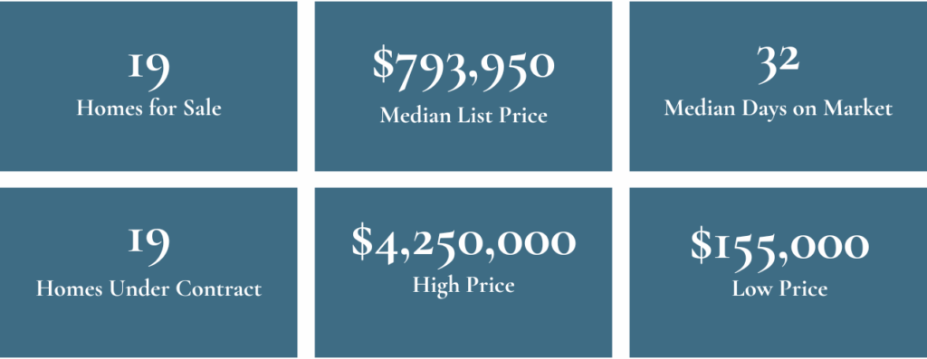 Current market statistics below are up-to-date and updated monthly. Median days on market is a good indicator of the average length of time the current inventory has been on the market.