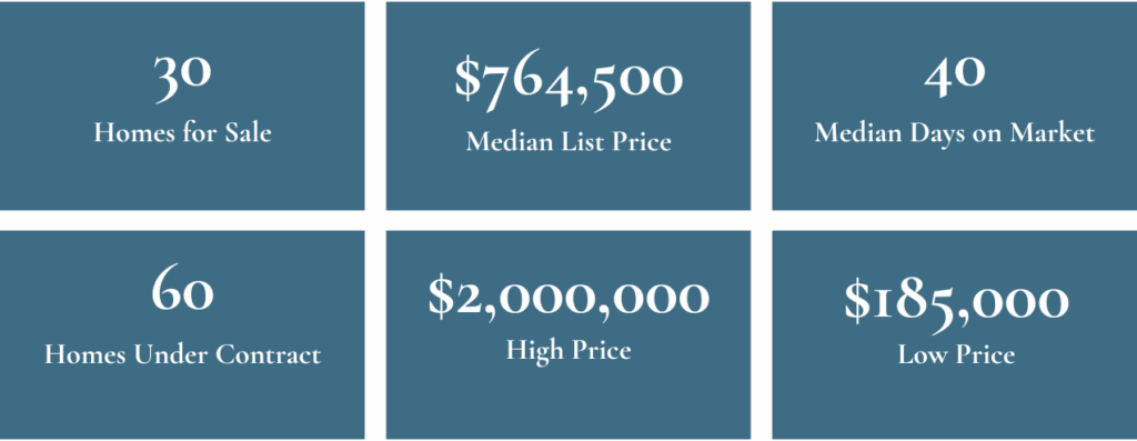 Current market statistics below are up-to-date and updated monthly. Median days on market is a good indicator of the average length of time the current inventory has been on the market.