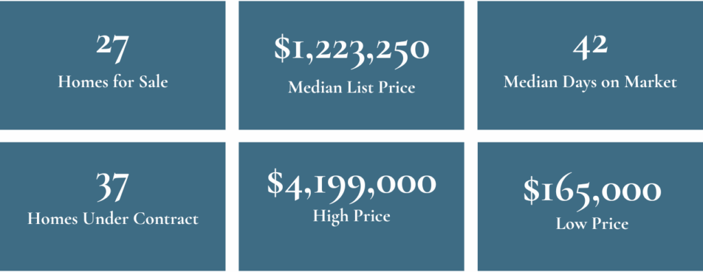 Current market statistics below are up-to-date and updated monthly. Median days on market is a good indicator of the average length of time the current inventory has been on the market.
